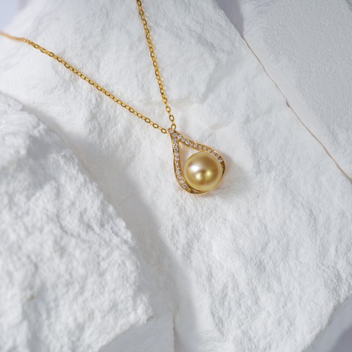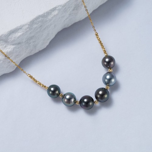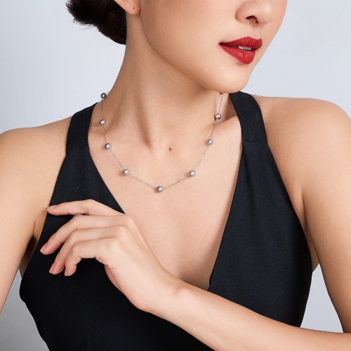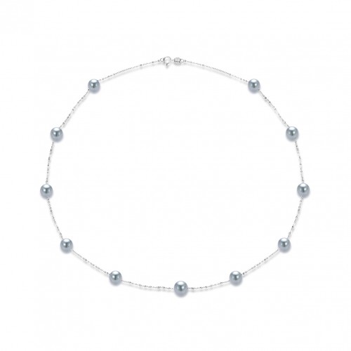 18K Solid Gold Silver Blue Akoya Pearl Necklace KN00186 | HARMONY