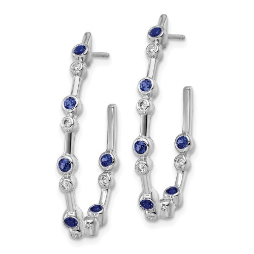 Shop High-Quality 14K White Gold Hoop Earrings with 1/5 Carat Diamond & Sapphire – Stylish Luxury!