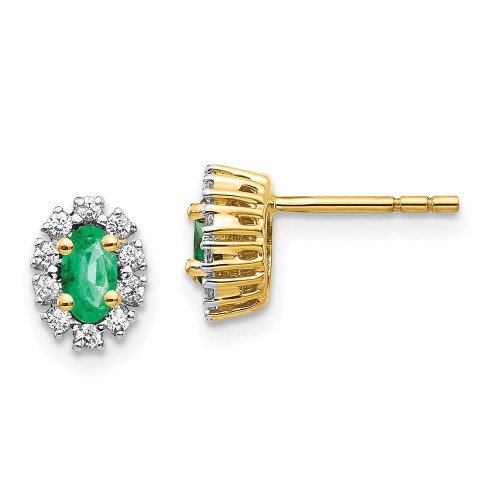 Shop Stylish 14K Gold Oval Created Emerald Halo Earrings with 1/5 Carat Lab-Grown Diamond
