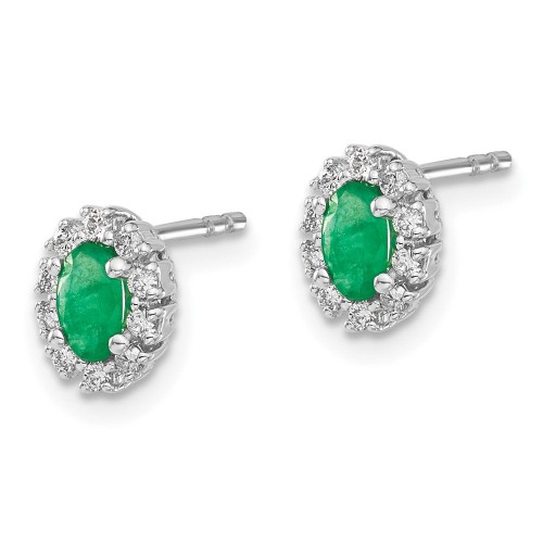 Shop Stylish 14K White Gold Oval Created Emerald Halo Earrings with 1/5 Carat Diamond