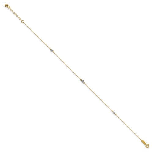 14K Two-tone Oval Link Diamond-cut Beads and 3-Hearts Anklet Plus Heart Dangle Extender 9in