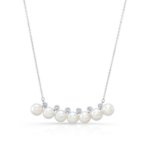 Freshwater Pearl Bar Necklace In 14k White Gold, 16-18 Inch Chain