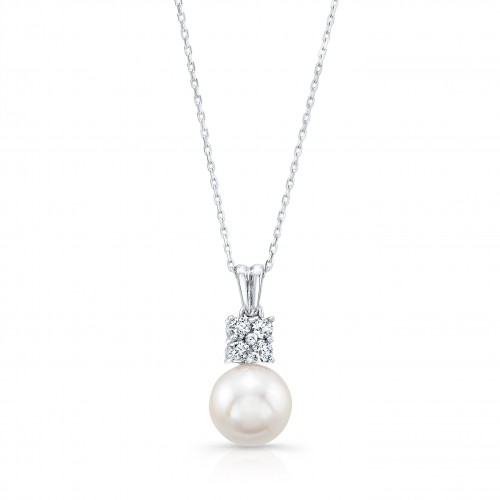 Pearl And Diamond Pendant In 14k White Gold 0.09ctw 18 Inch Chain