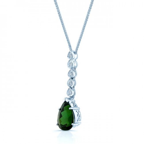 Peridot And Diamond Circle Halo Pendant In 14k White Gold With 18 Inch Baby Curb Chain