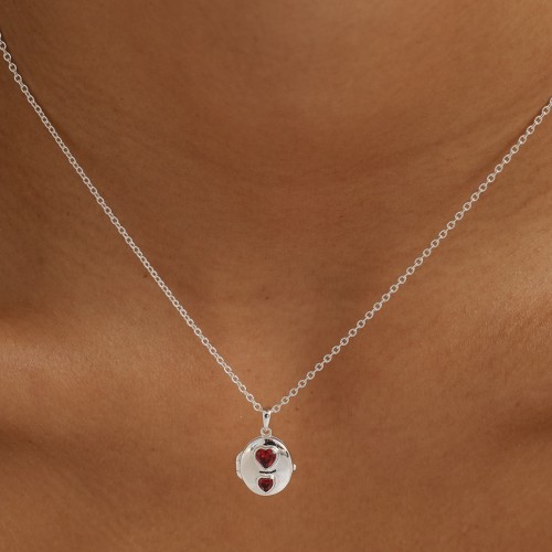 Oval Double-Hearts Engravable Locket Necklace – Sterling Silver
