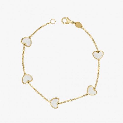 Mother of Pearl Heart Station Bracelet 14k Yellow Gold