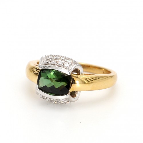 Green Tourmaline & Diamond Encrusted Fashion Ring