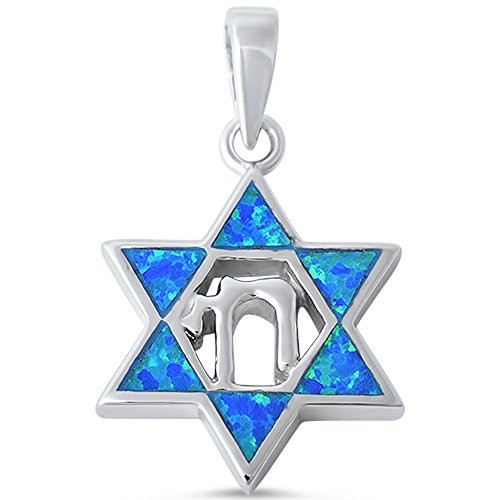 CLOSEOUT! Blue Opal Star of David with Chai Symbol .925 Sterling Silver Pendant