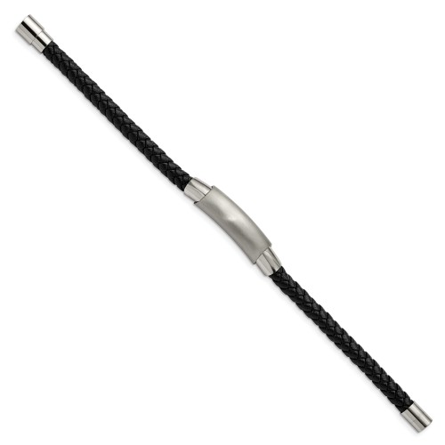 Chisel Stainless Steel Brushed and Polished Black Braided Leather 8.25 inch Bracelet