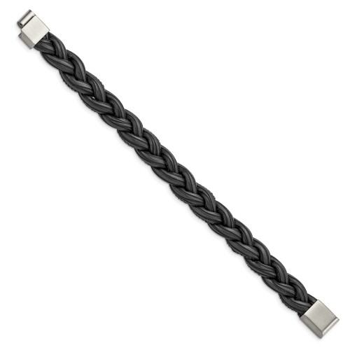 Chisel Stainless Steel Brushed Black Braided Leather 8.25 inch Bracelet