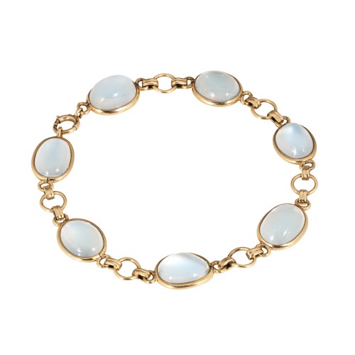 Vintage Art Deco Moonstone Bracelet 14k Yellow Gold 7″ Estate Fine Jewelry