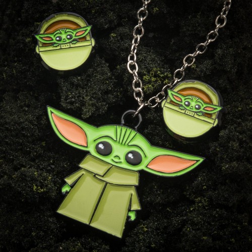 Star Wars: The Mandalorian Grogu (AKA: Baby Yoda/ The Child) Necklace And Earring Set