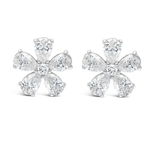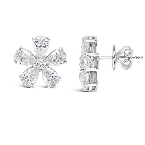 Seven Stone Flower Studs 14 Karat White Gold 3.50 cttw