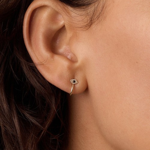 Diamond and Blue Sapphire Evil Eye Stud Huggies 14k Solid Gold