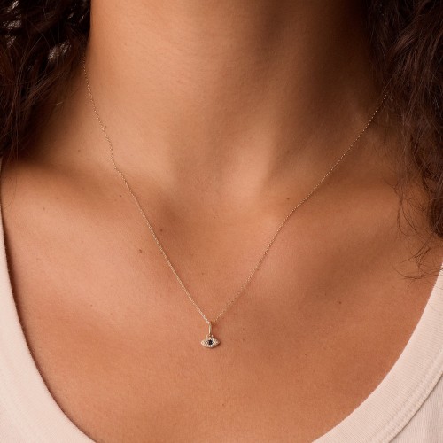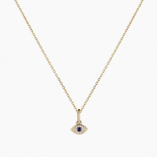 Diamond and Blue Sapphire Evil Eye Charm Necklace 14k Solid Gold