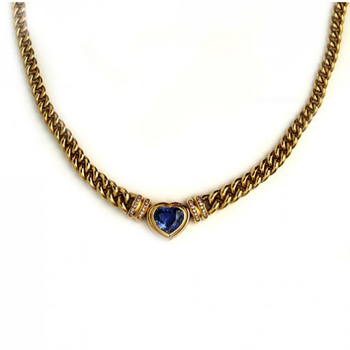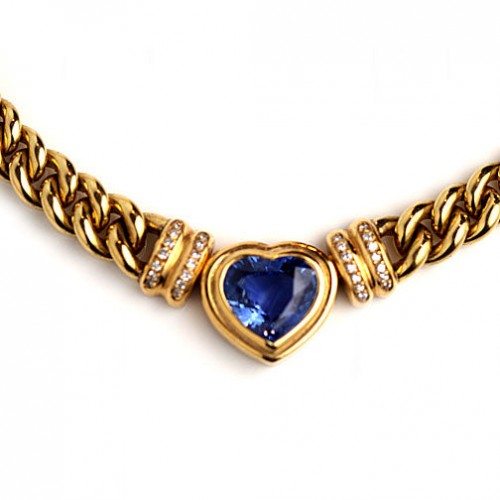 Vintage 2.50 Carat Heart Shaped Sapphire and Diamond Necklace