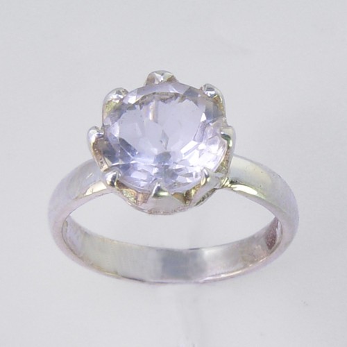 Quartz Crystal 2.45 ct Faceted Round Sterling Silver Ring, Size 7