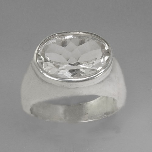 Quartz Crystal 4.5 ct Oval Bezel Set Sterling Silver Ring, Size 7