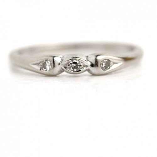 Antique Jabel Navette Diamond Wedding Band in White Gold | 1950s