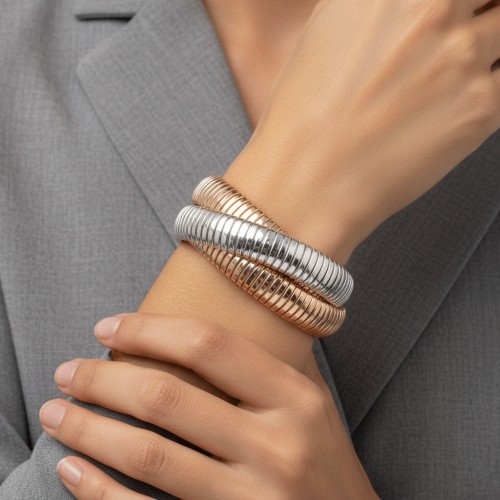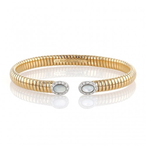 1970’s 18k Yellow Gold Woven Cobra and Mother of Pearl Bracelet
