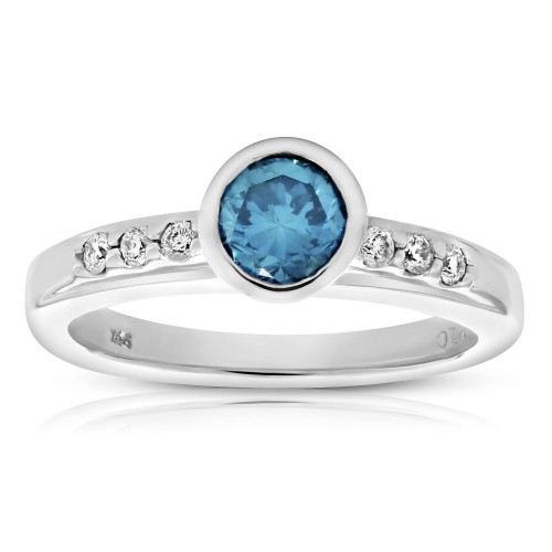 4/5 cttw Blue Bezel Diamond Engagement Ring in 14K White Gold 7