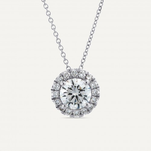1 1/5 ctw Round Diamond Halo Pendant 14K White Gold Lab Grown G-SI