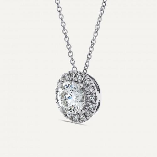 1 1/5 ctw Round Diamond Halo Pendant 14K White Gold Lab Grown G-SI