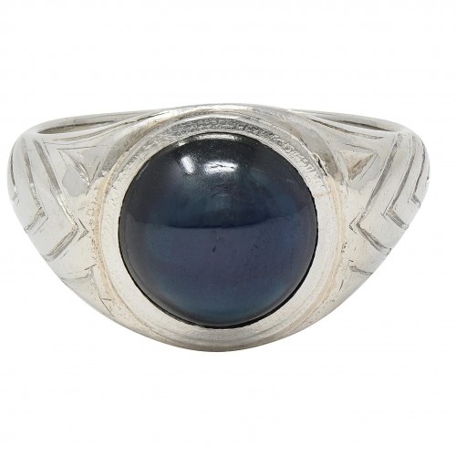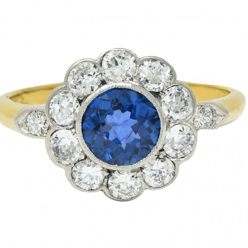 Art Deco 1.86 CTW No Heat Burma Sapphire Diamond Platinum 14 Karat Gold Halo Ring