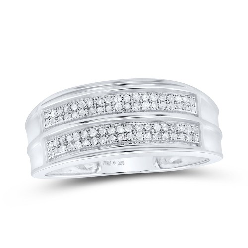 Sterling Silver Sterling Silver Mens Round Pave-Set Diamond Wedding Band Ring 1/4 Cttw 4.32 Gram S
