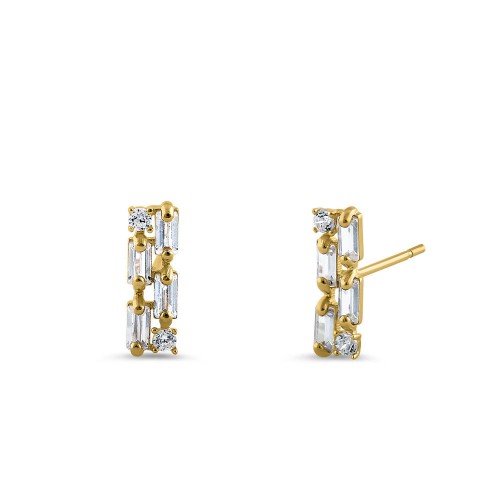 Solid 14K Yellow Gold Rectangular Round & Emerald Cut CZ Earrings