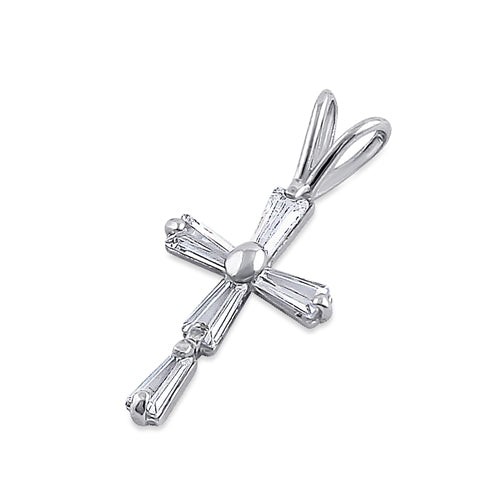 Solid 14K White Gold Baguette Straight Clear CZ Cross Pendant