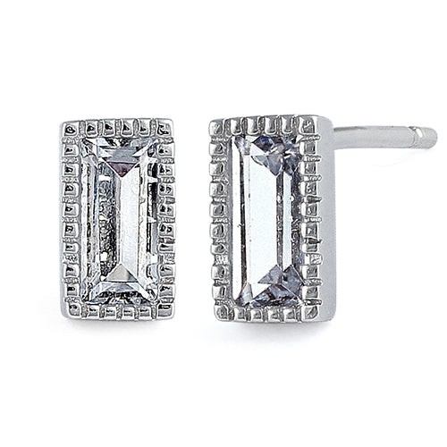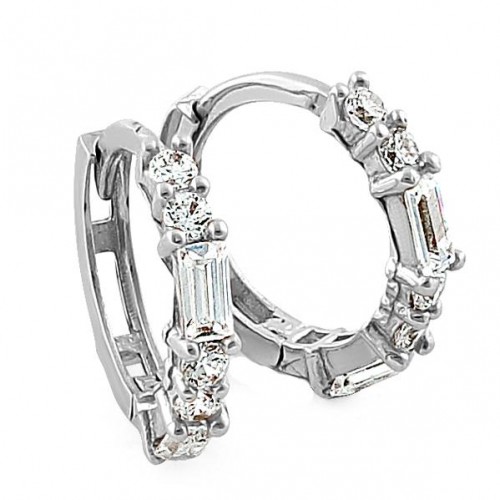 Solid 14K White Gold Round & Baguette Straight CZ Hoop Earrings