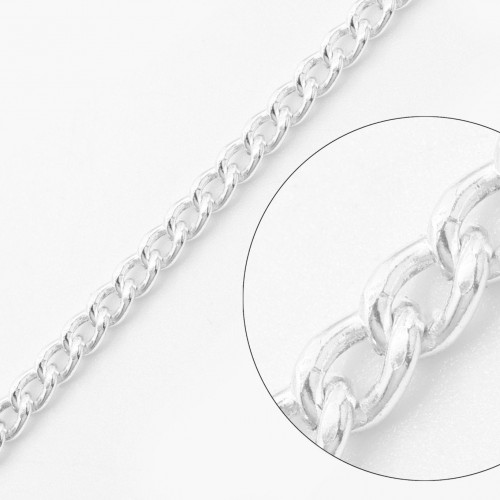2.3mm Curb Flat Chain, 925 Sterling Silver, Wholesale, Pay Per Inch, Jewelry Making Chain