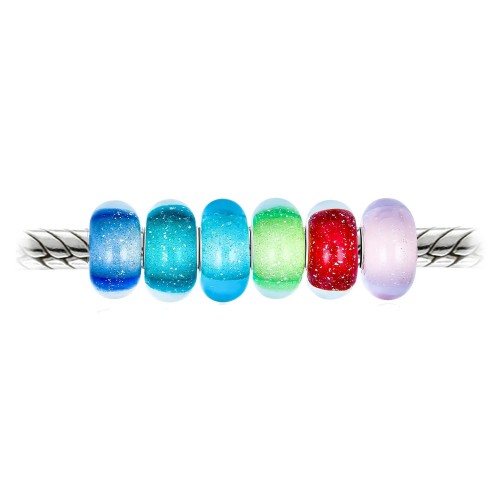 Multi Colors Set of 6 Sterling Silver Core Murano Glass Charm Bead for Bracelet