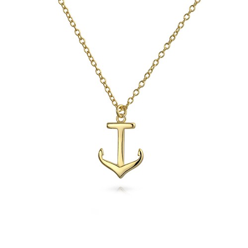 Minimalist Nautical Boat Anchor Pendant Necklace 14K Gold Plated Silver 16″