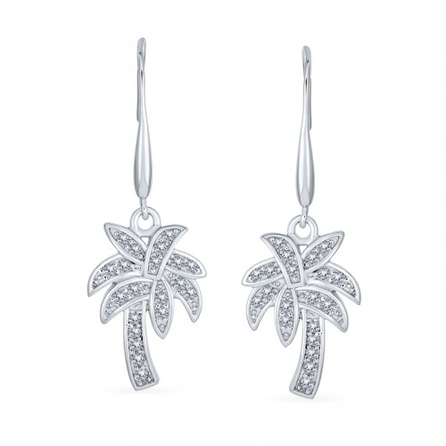 Nautical Beach CZ Palm Tree Dangle Chandelier Earrings in Sterling Silver