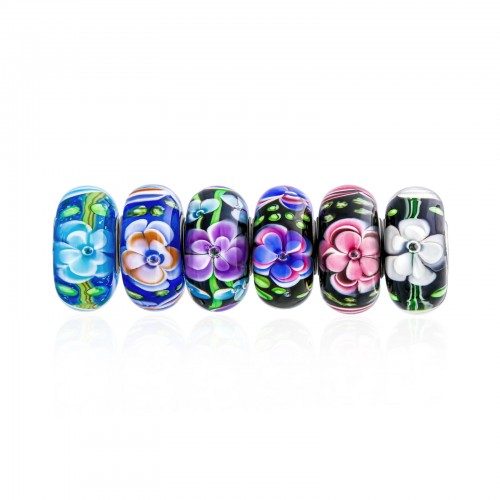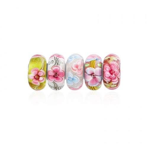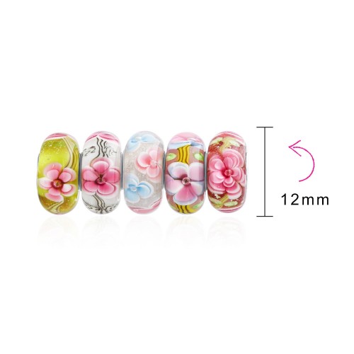 Mixed Set Floral Murano Glass Charm Bead for European Bracelets Sterling Silver Core
