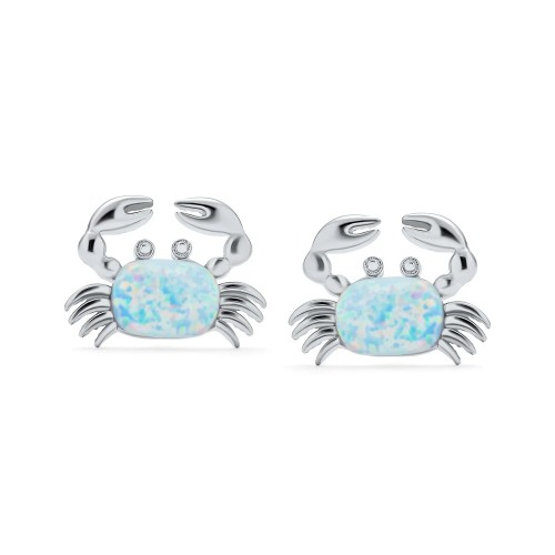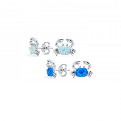 Set of 2 Small Created Blue White Opal Crab Stud Earrings Sterling Silver