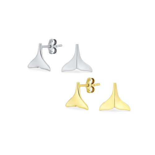 Set of 2 Nautical Mermaid Fin Whale Tail Stud Earrings Silver and Gold Vermeil