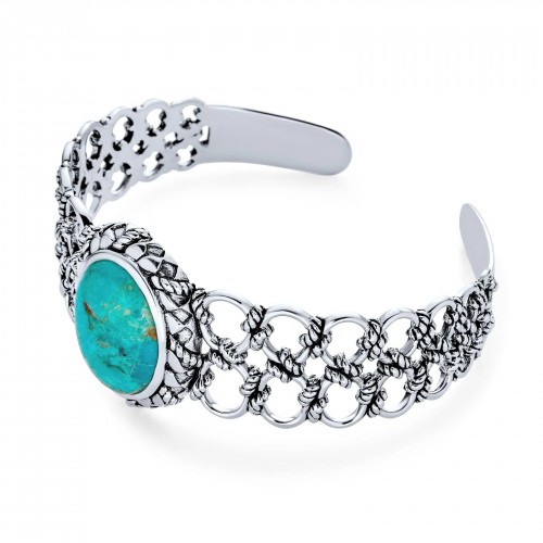 Southwestern Turquoise Gemstone Cuff Bracelet Sterling Silver Lattice Design