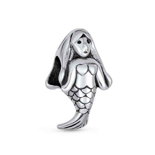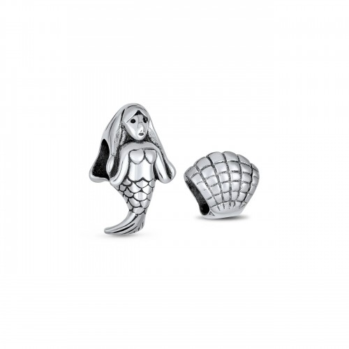 Set of 2 Nautical Clam Shell and Sea Nymph Mermaid Charm Bead Sterling Silver