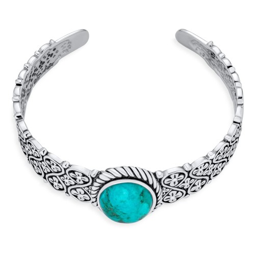 Southwestern Turquoise Cabochon Gemstone Cuff Bracelet in Sterling Silver