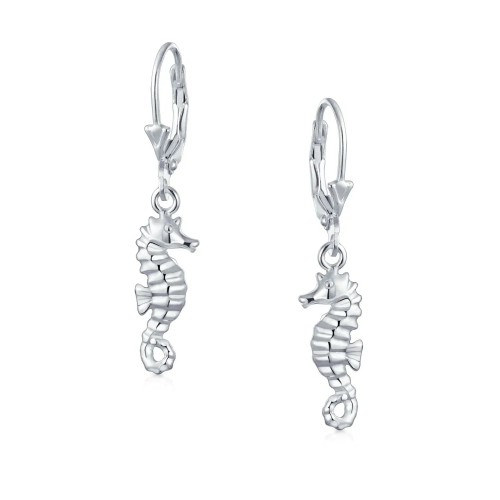 Seahorse Dangle Earrings Sterling Silver Nautical Beach Vacation Jewelry