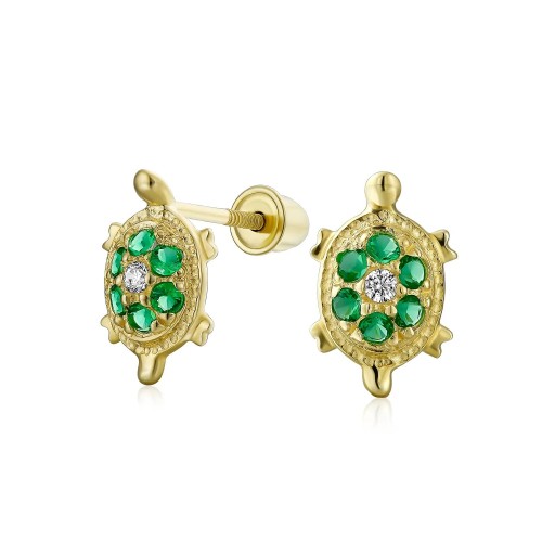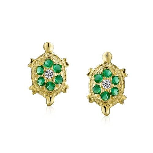 Petite Nautical Pave CZ Green Tortoise 14K Gold Stud Earrings with Secure Back