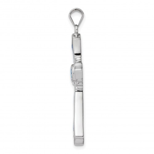 Sterling Silver Lab Created Blue Opal and Cubic Zirconia Cross Pendant