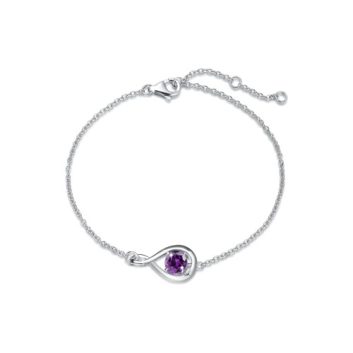 “Infinite Embrace” April Birthstone Cubic Zirconia Stone Infinity Symbol Sterling Silver Bracelet