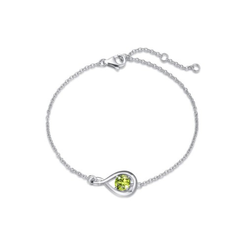 “Infinite Embrace” August Birthstone Peridot Stone Infinity Symbol Sterling Silver Bracelet