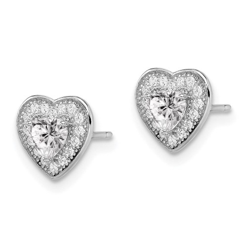 Brilliant Embers Sterling Silver Rhodium-plated 32 Stone Micro PavÇ CZ Heart Post Earrings