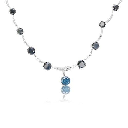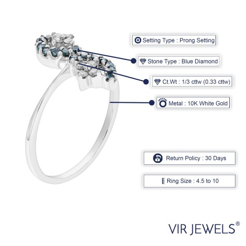0.55 cttw Multi Row Blue Diamond Wedding Band in 10K White Gold 7