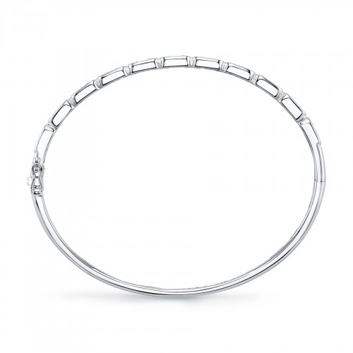 This elegant bangle showcases a sophisticated arrangement of diamond baguettes totaling 0.65 carats, expertly set in lustrous 14K white gold. The linear baguette cuts create a refined geometric aesthetic that complements any wrist, while the premium white gold setting enhances the diamonds’ brilliance. A timeless piece that transitions seamlessly from everyday wear to special occasions, offering both understated luxury and enduring style.